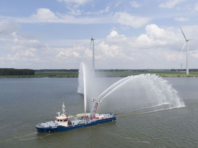 The vessels, classed as Damen Fire-Fighting Vessels 3508, are completely new designs fitted out to the latest standards. 35.5 metres in length and with a maximum speed of 12 knots, they are equipped to not just fight fires in the port and within the city itself. Their compact size also enables them to undertake other activities including water supply, rescue and recovery, technical assistance and environmental protection. And with their ability to lower their wheelhouses and a draught of just 1.5 metres they can also undertake bridge inspections and maintenance within the city, as well as serve locations that larger vessels would be unable to reach.