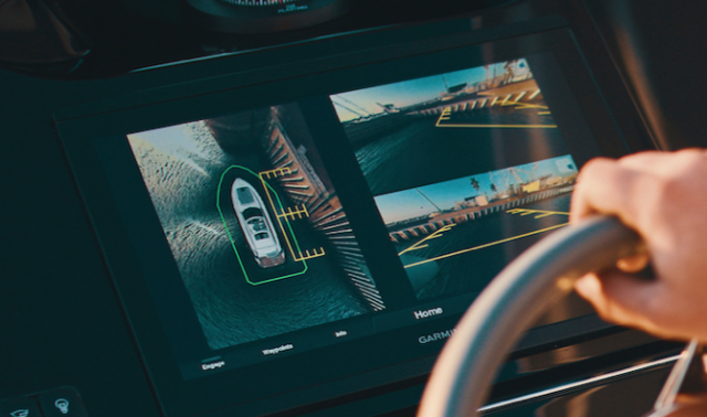 Designed to help take the guess work out of docking, Surround View maximises visibility and minimises blind spots by displaying a stitched image with 360-degree real-time video views from around the vessel directly to compatible Garmin chartplotters or multi-function (MFD) helm displays. Thanks to Surround View’s augmented reality Visual Bumper and Distance Markers features, captains can quickly and easily manoeuvre the vessel with increased situational awareness ; helping avoid collisions.