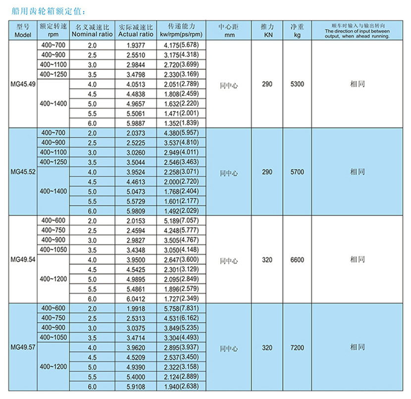 | MG系列大功率船用齒輪箱 | |||
