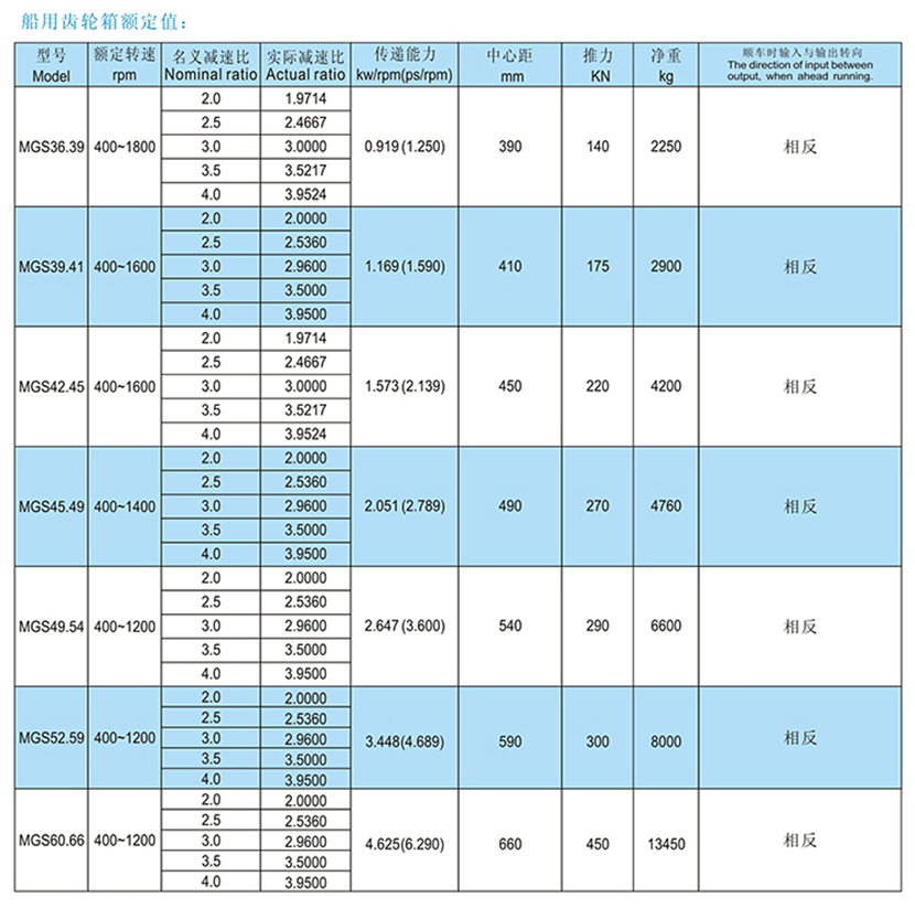 | MG系列大功率船用齒輪箱 | |||