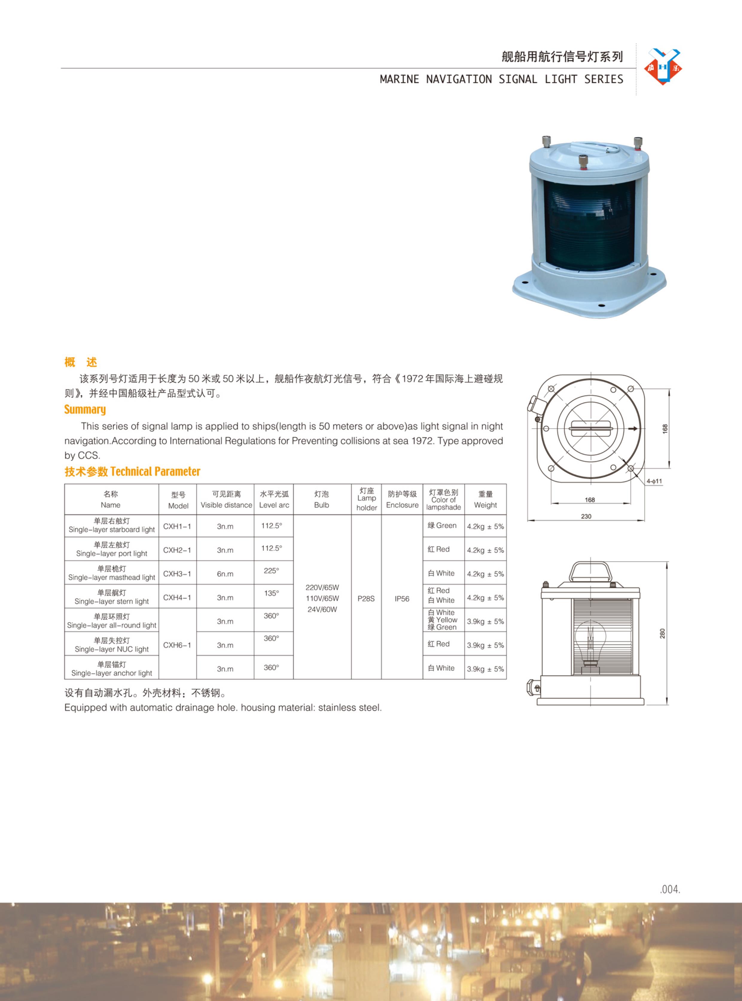 艦船用航行信號燈單層環照燈