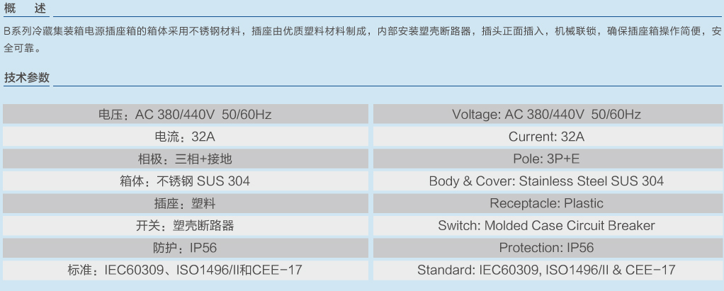| B型系列冷藏集裝箱電源插座箱不帶監視插座 | |||