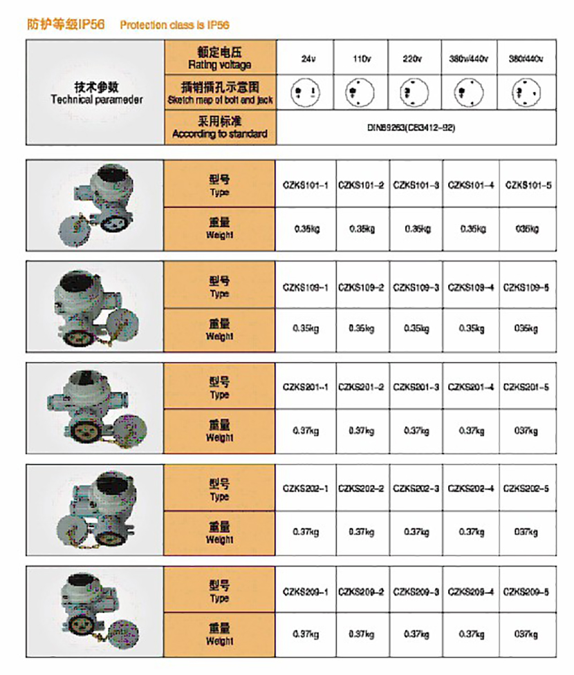 類型: 船用插座 重量: 0.35kg