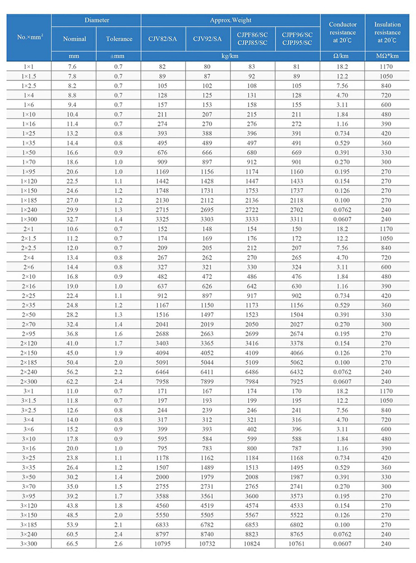 類型: 交聯(lián)聚乙烯絕緣阻燃低壓電力及控制電纜 名義直徑: 25.2mm