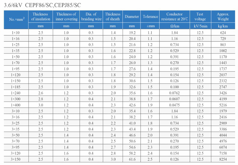 | 20℃時(shí)的絕緣電阻: | 0.0762MΩ×km | ||