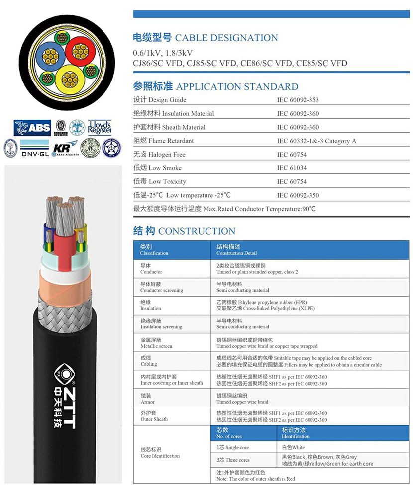 類型: 船用變頻電纜 名義直徑: 26.4mm
