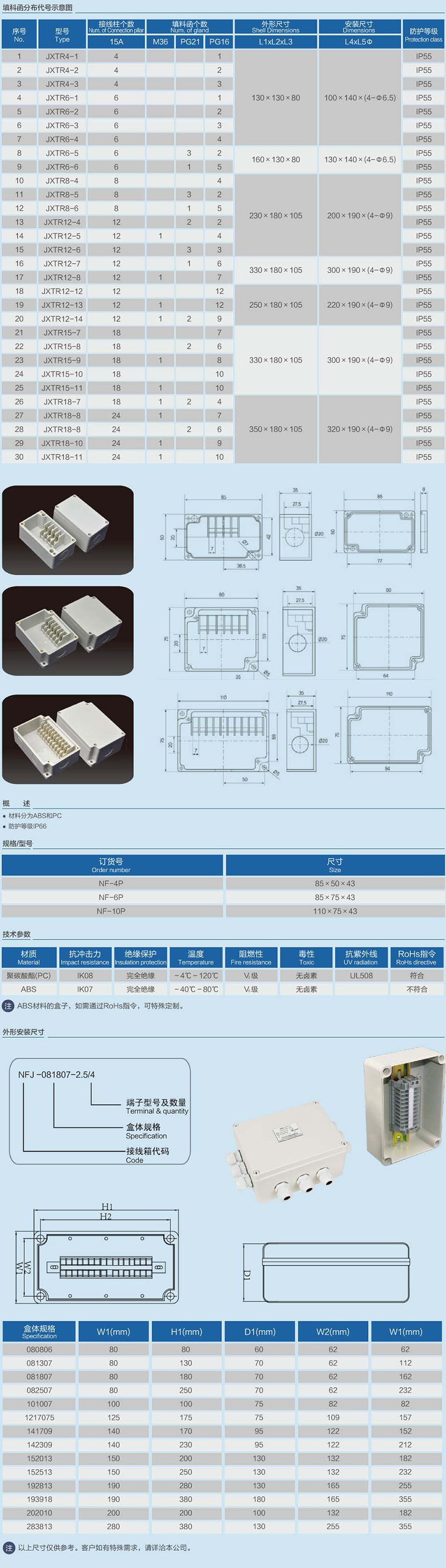 接線柱個數: 18 填料函個數: PG16/8