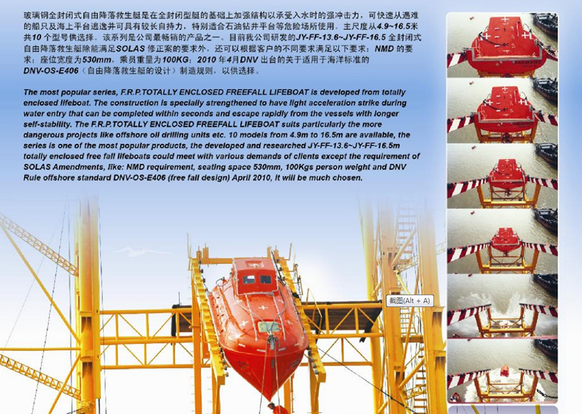 13.6米玻璃鋼全封閉式自由降落救生艇