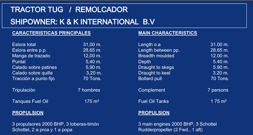 拖力: 70t 燃油容量: 175m3