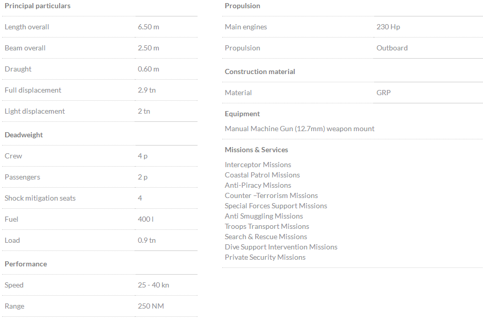 總長: 6.50m 航速: 40kn