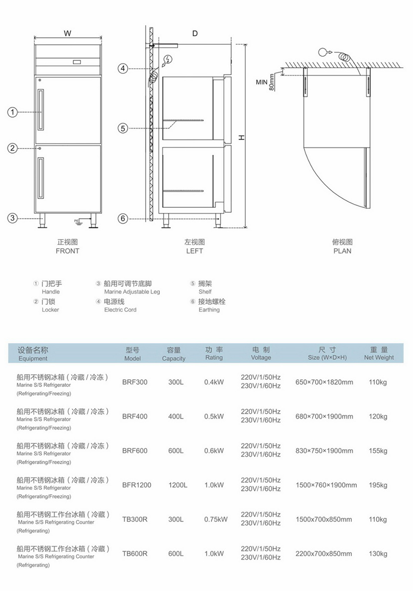 | 船用不銹鋼工作臺電冰箱(冷藏) | |||