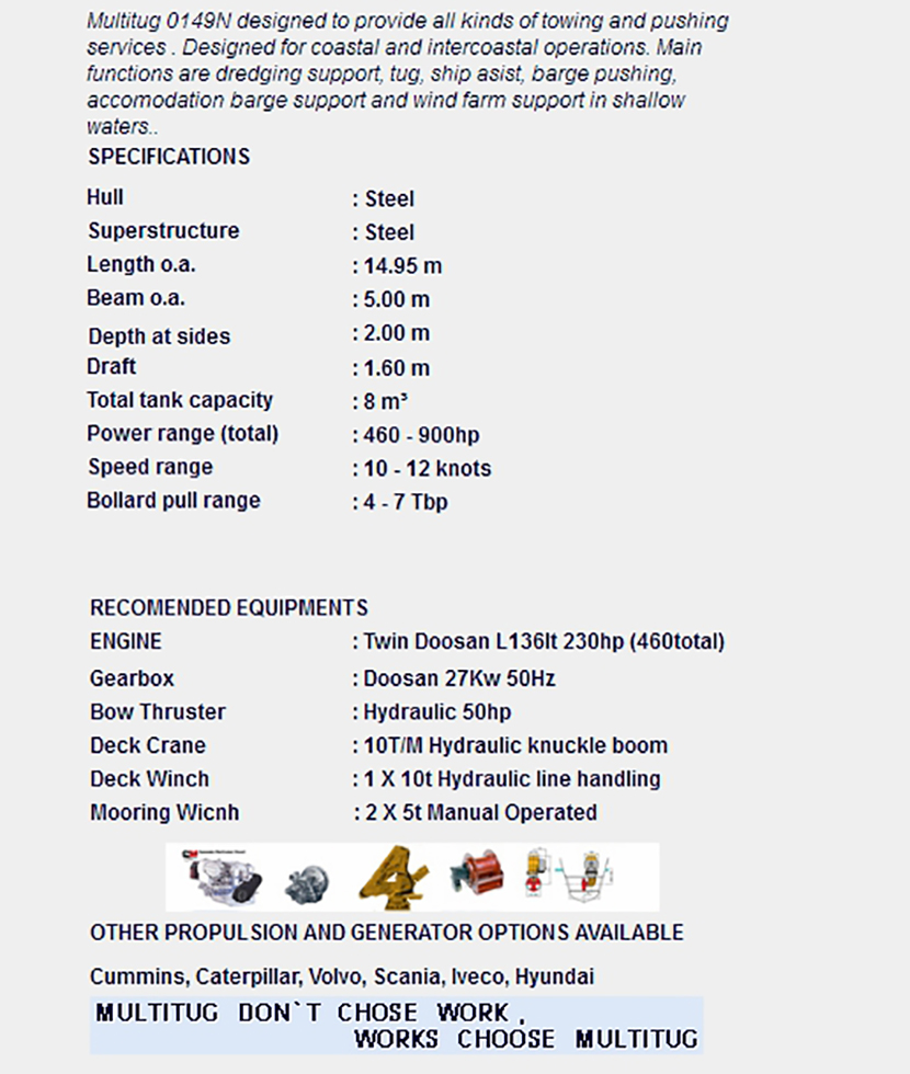 發動機功率: 2×230hp 型寬: 5.00m