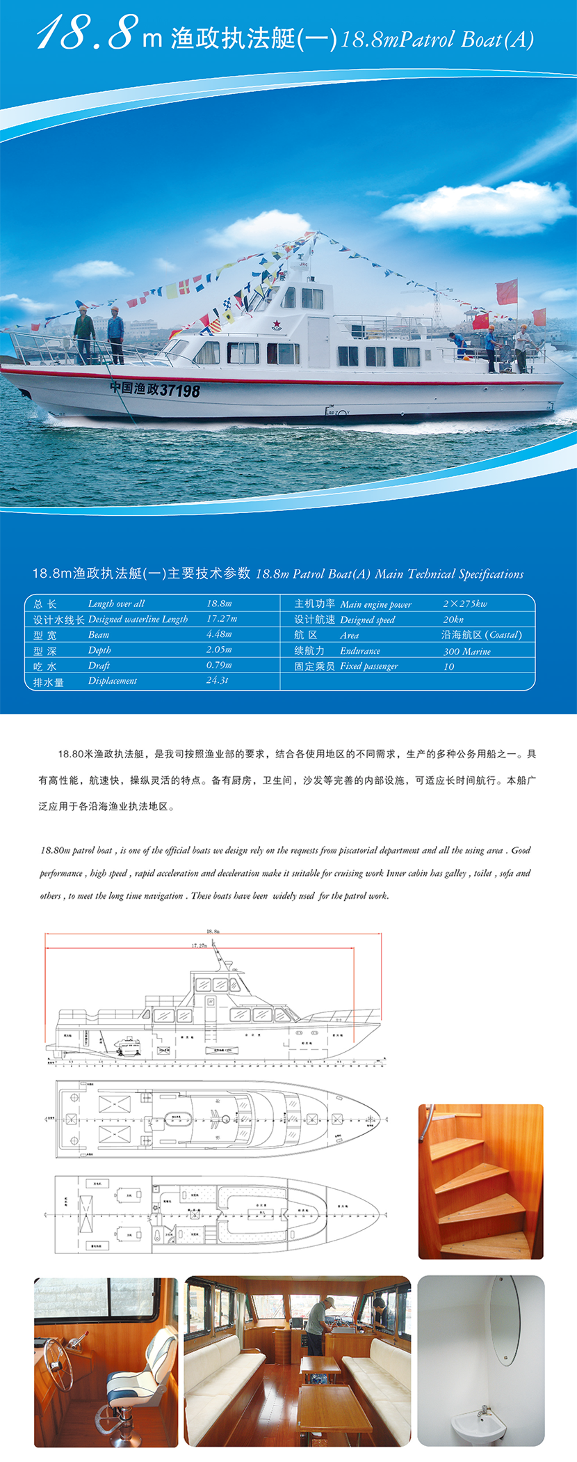 總長(zhǎng): 18.8m 航速: 20kn