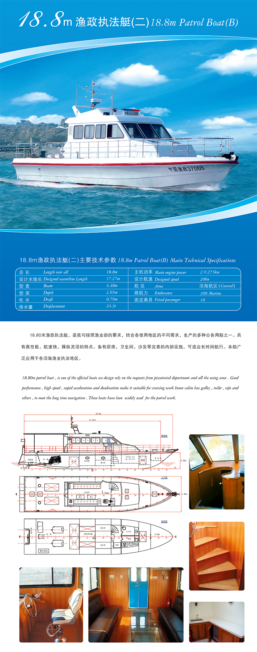 總長(zhǎng): 18.8m 航速: 20kn