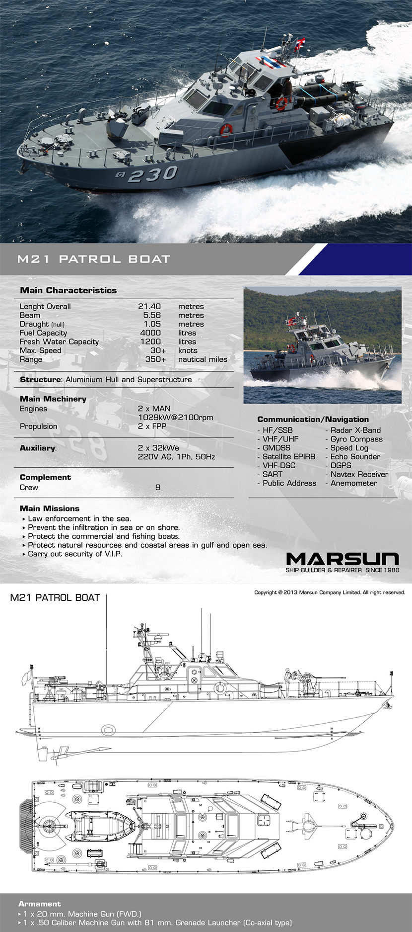 | 總長: | 21.40m | 航速: | 30kn |