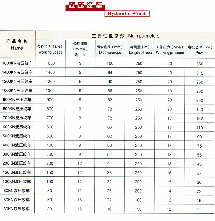 鋼索直徑: 86mm 繩容量: 250m