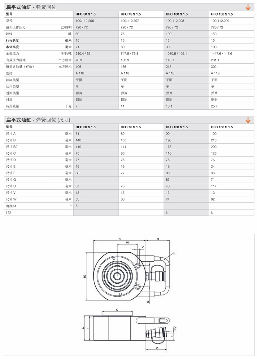 | 扁平式彈簧回位油缸 | |||