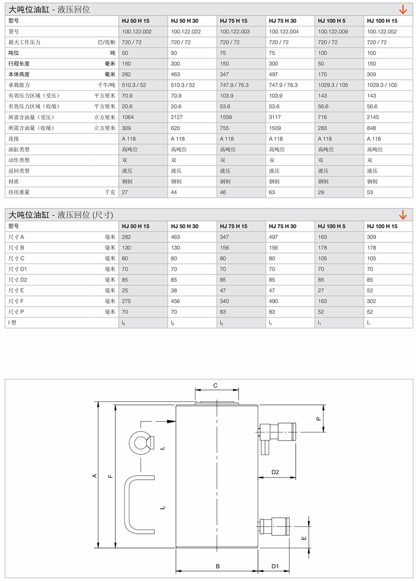 最大工作壓力: 720巴/72兆帕 第一段行程長度: 50 毫米