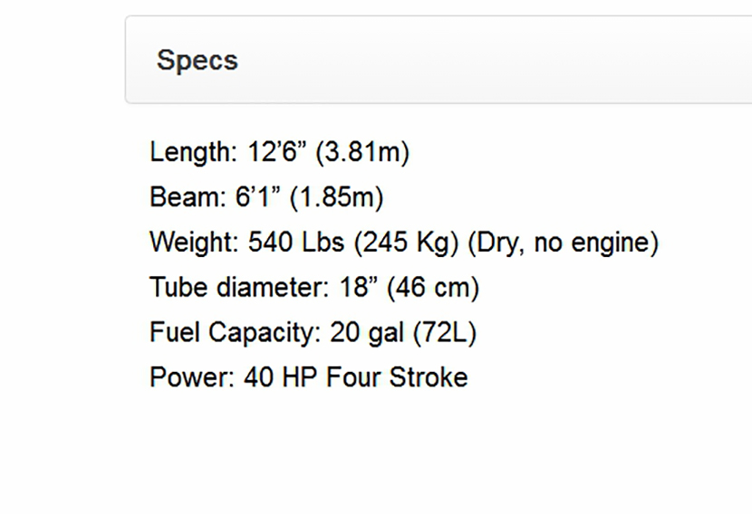 總長: 3.81m 總重量: 245kg