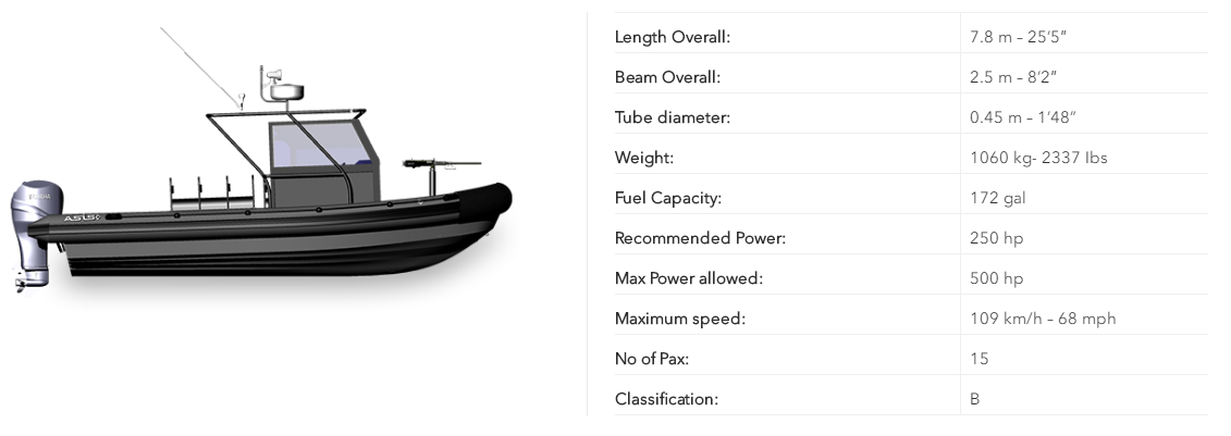 總長: 7.8m 載重量: 1060kg