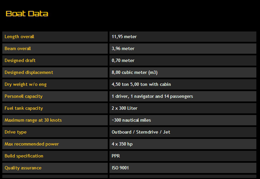 | 總長: | 11.95m | 最大乘員: | 16p |