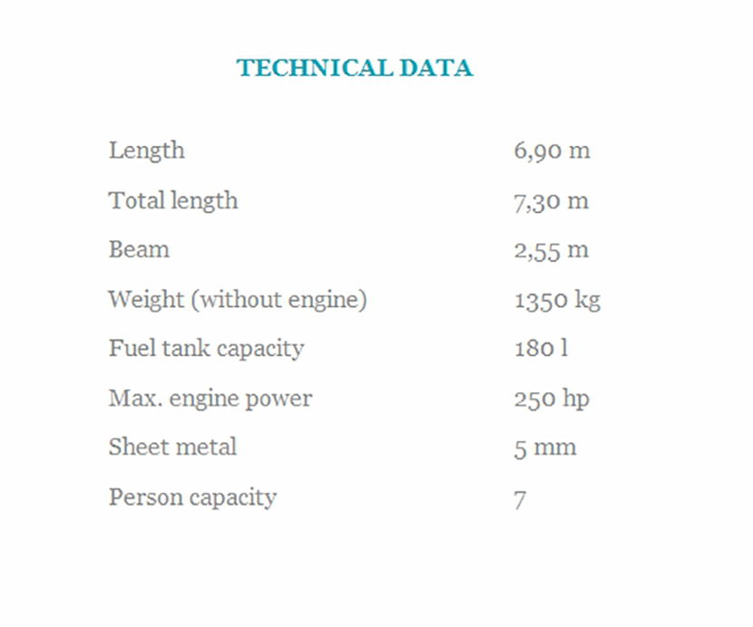 總長: 7.30m 最大乘員: 7p