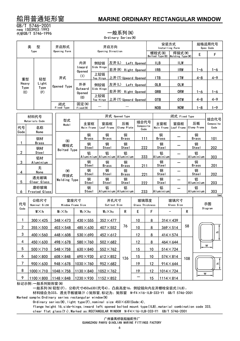 | 船用焊接安裝式普通矩形窗 | |||