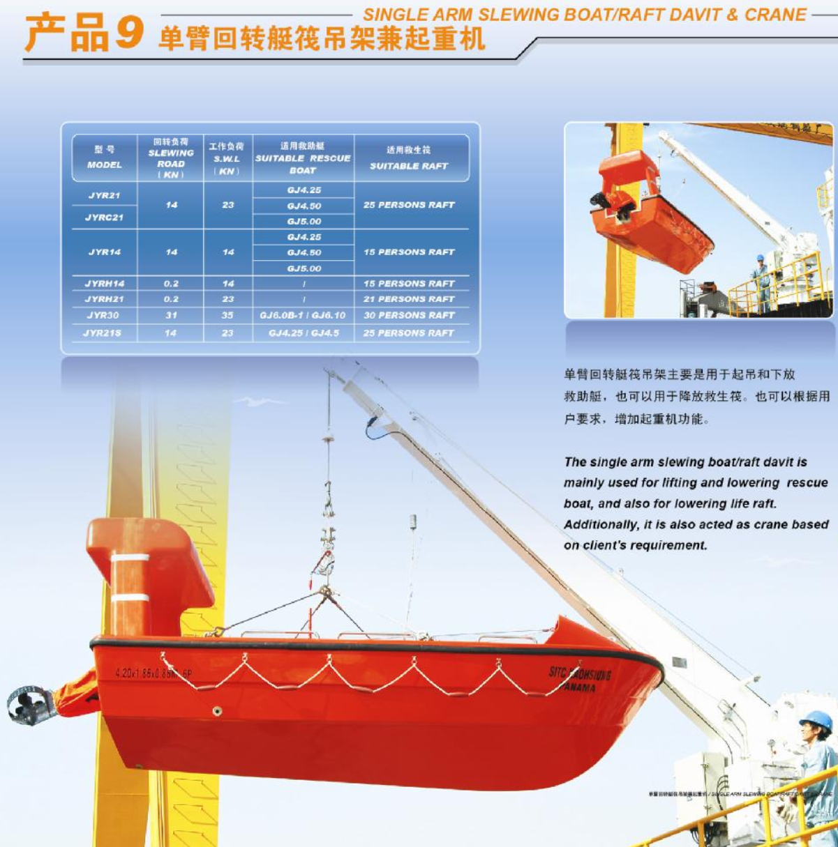 單臂回轉式艇 筏吊艇兼起重機