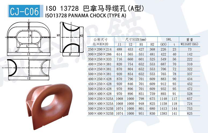 | ISO 13728巴拿馬導纜孔(A型) | |||