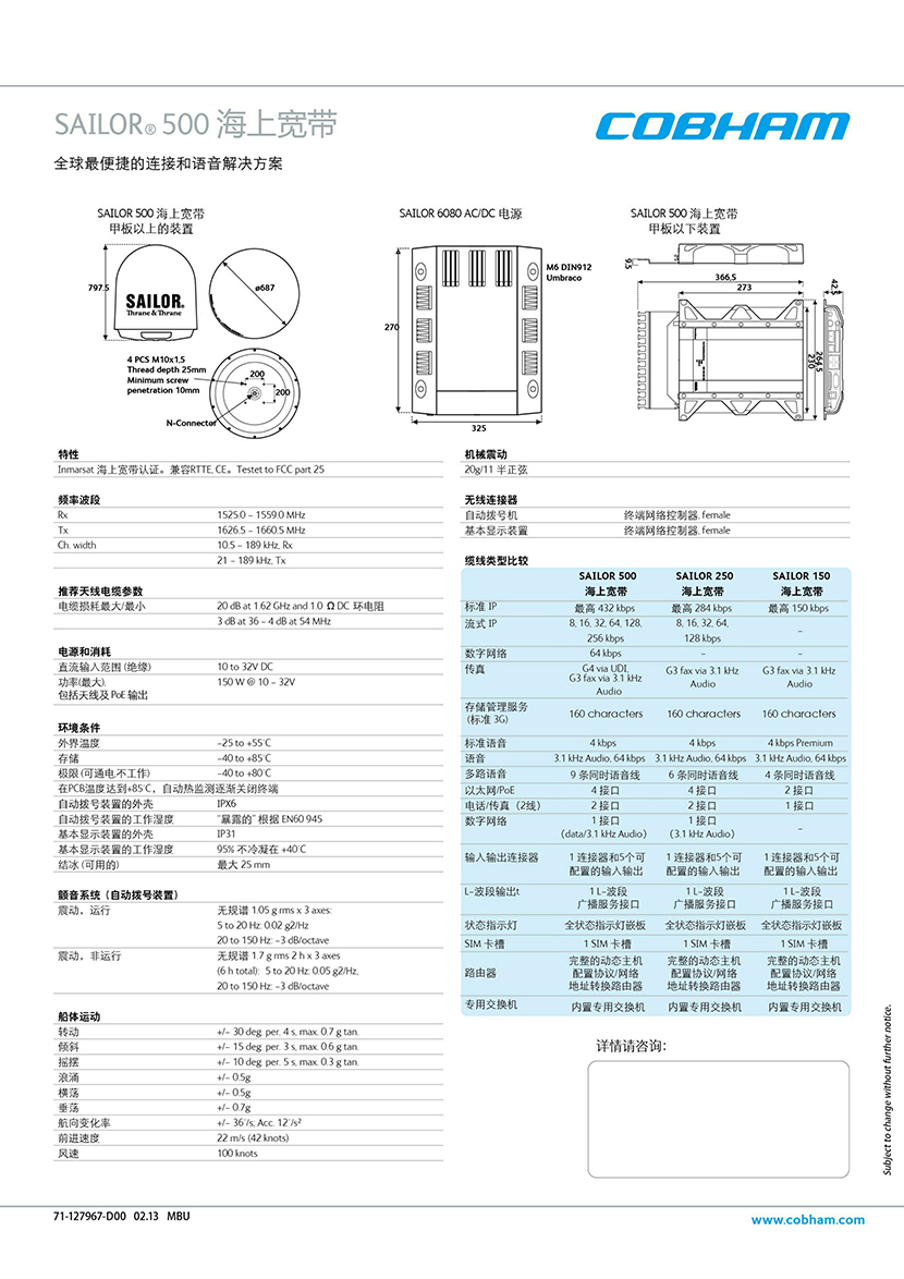 接收頻率: 1525.0-1559.0 MHz 發射頻率: 1626.5-1660.5 MHz