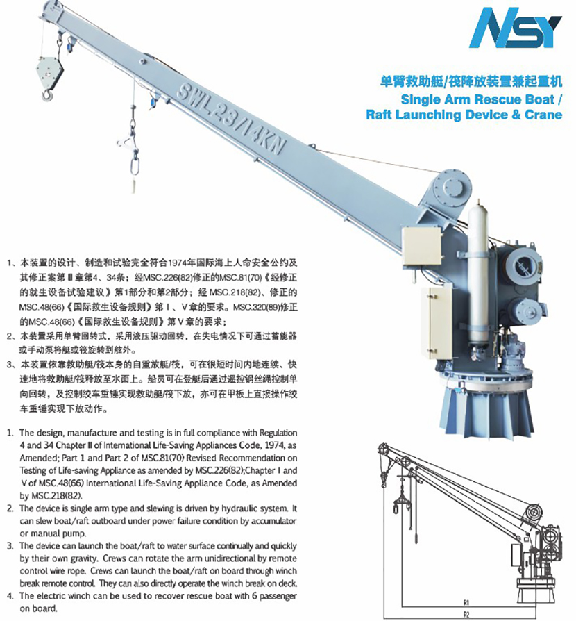 單臂救助艇-筏降放裝置兼起重機
