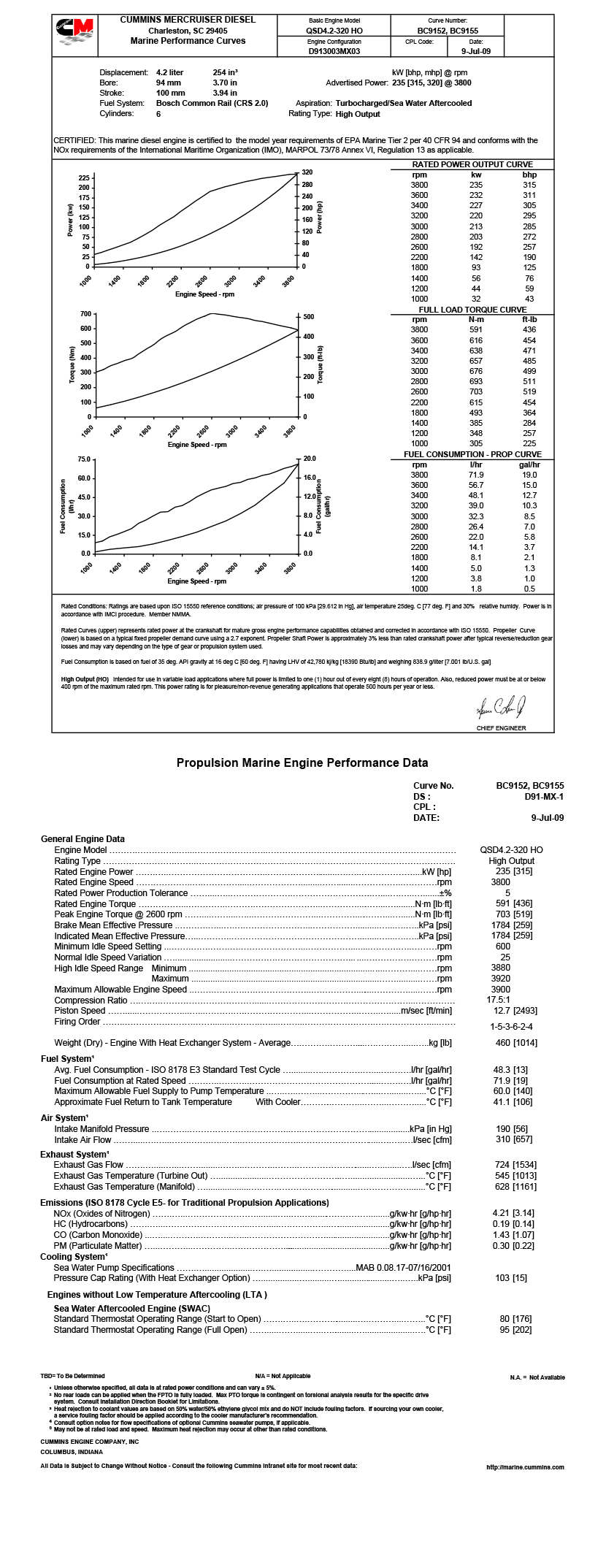 This marine diesel engine is certified to the model year requirements of EPA Marine Tier 2 Per 40 CFR 94 and conforms with the NOx requirements of the International Maritime Organization(IMO),MARPOL 73/78 Annex VI,Regulation 13 as applicable. |