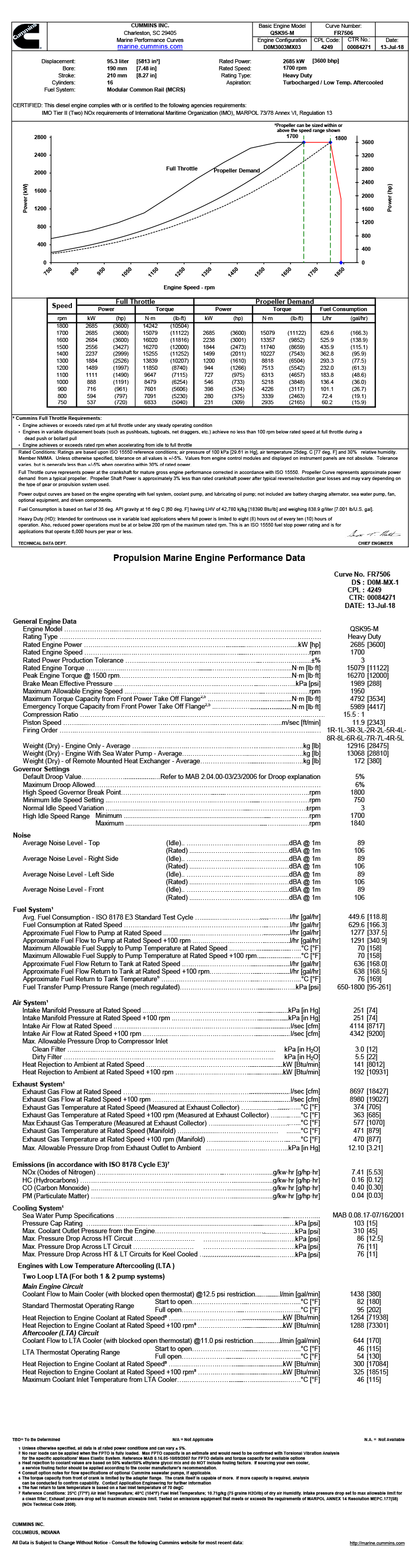 進(jìn)氣方式: Turbocharged/ Low Temp. Aftercooled 最大扭矩: 16270N.M(轉(zhuǎn)速為1500rpm下的最大扭矩)