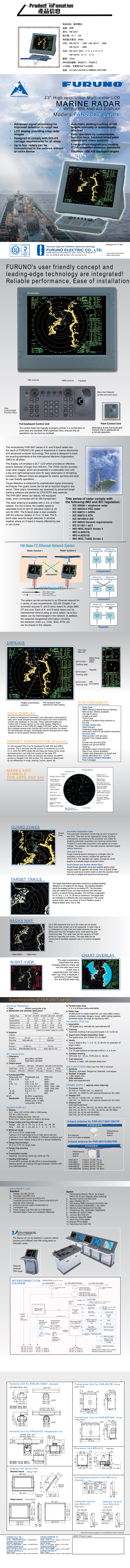天線水平波束寬度: 1.9°/1.23°/0.95°(X-Band);2.3°/1.8°(S-Band) 天線垂直波束寬度: 20°/20°/20°(X-Band);25°/25°(S-Band)