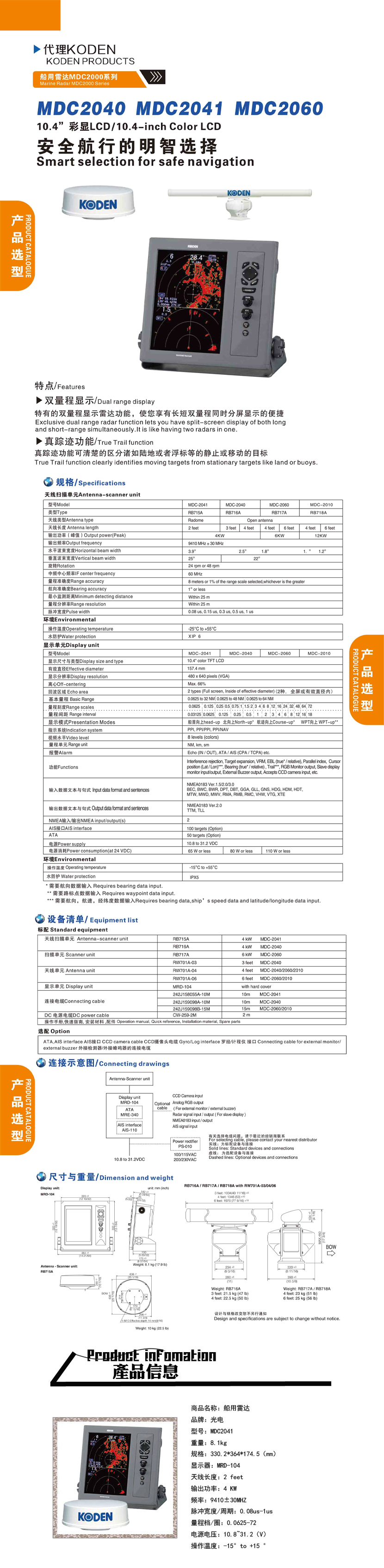 輸出功率: 4kW 天線水平波束寬度: 3.9°/2.5°/1.8°/1°/1.2°
