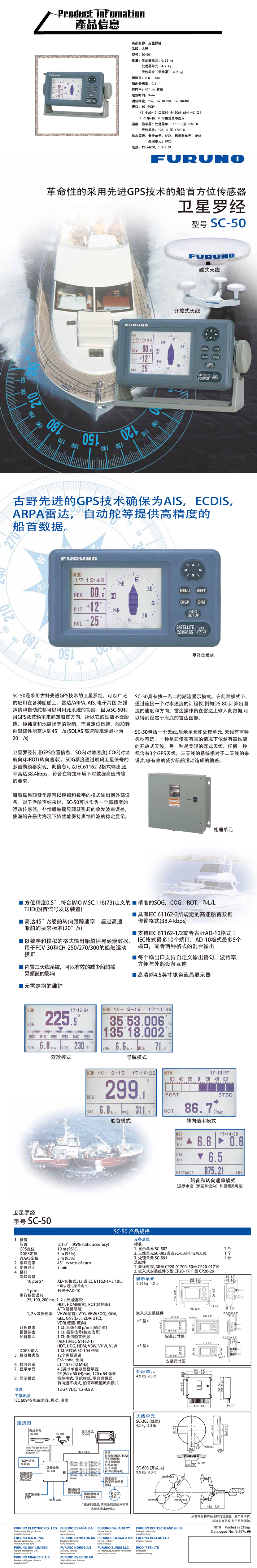 電源電壓: 12-24VDC 重量: 顯示器單元0.55kg,處理器單元4.2kg,天線單元(天線罩)4.2kg