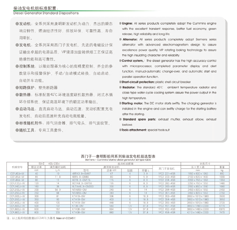 | 西門子-康明斯船用系列柴油發(fā)電機組 | |||