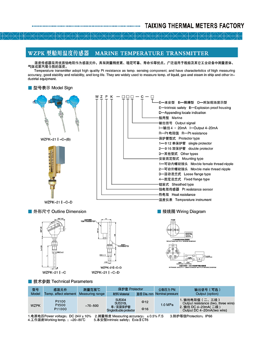 | WZPK型船用溫度傳感器 | |||