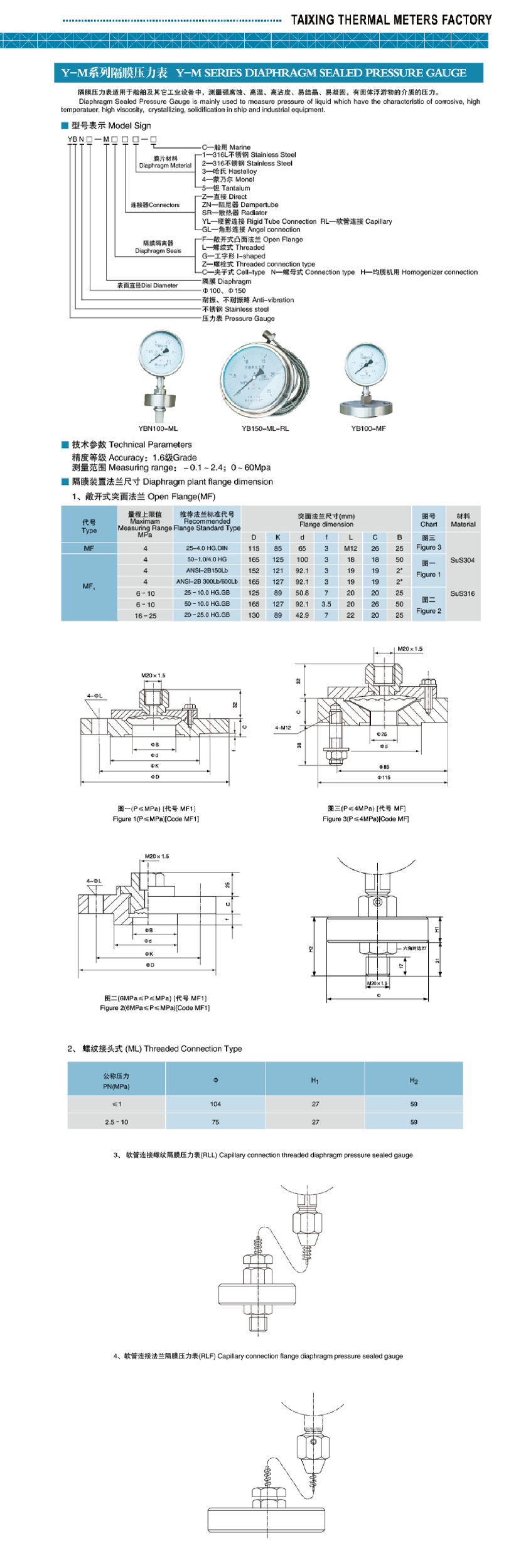 | Y-M系列隔膜壓力表 | |||