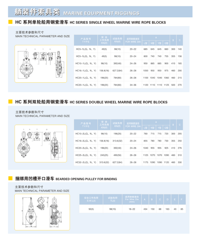 | HC系列單輪船用鋼索滑車 | |||
