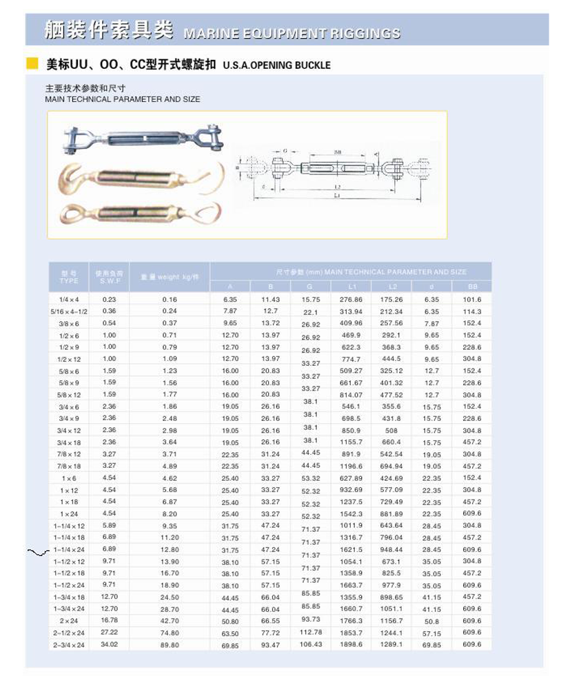 美標UU、OO、CC型開式螺旋扣