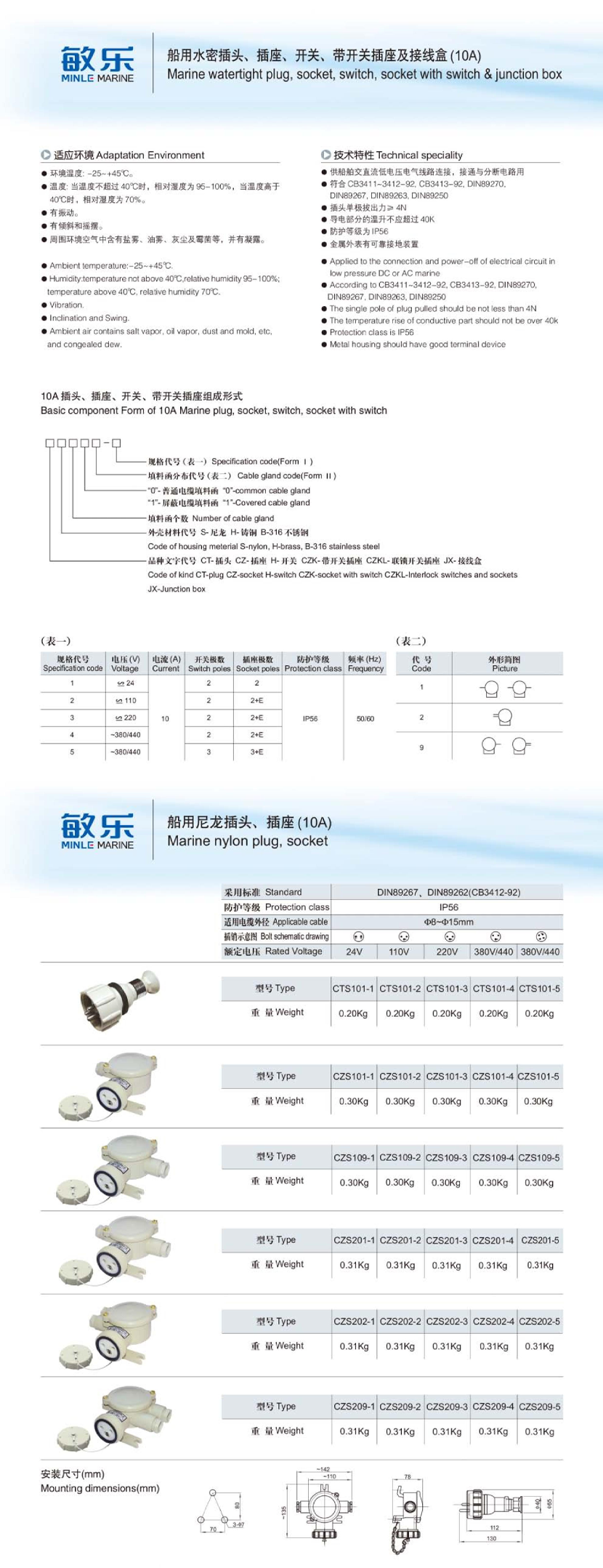 船用尼龍插頭(10A)