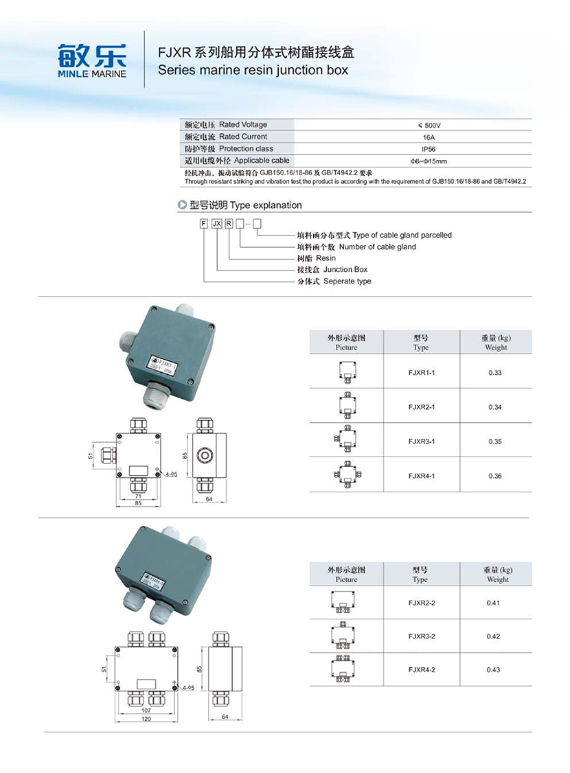 FJXR系列船用分體式樹酯接線盒