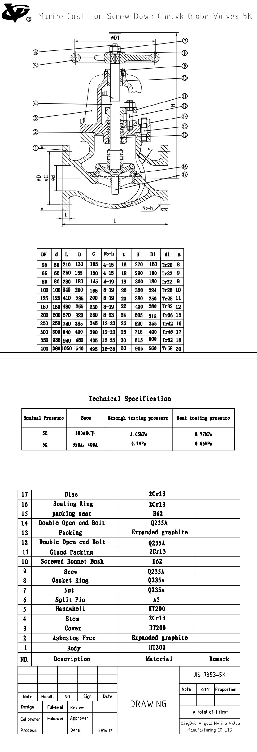 | 殼體測試壓力: | 1.05MPa | 密封測試壓力: | 0.77MPa |
