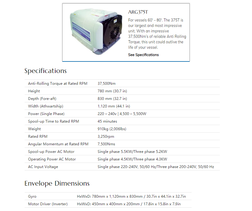 啟動加速時間: 45min 額定減搖力矩: 37500N-M
