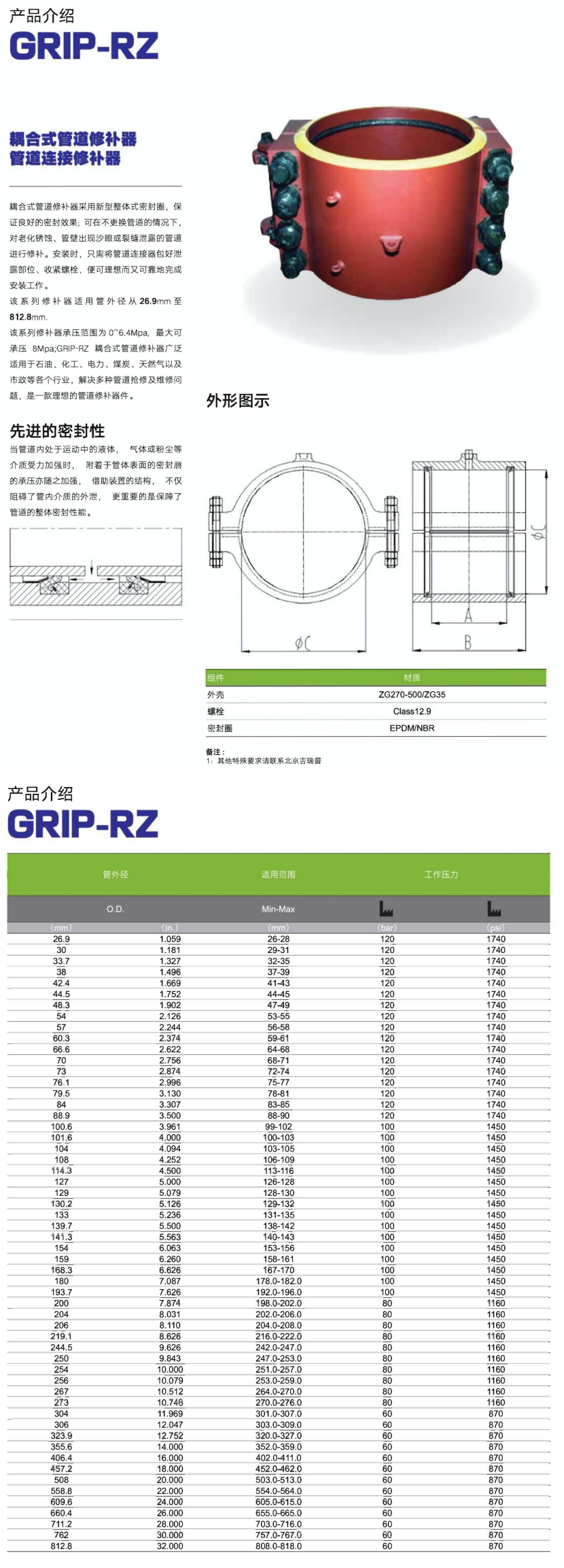 管道外徑: 256mm 適用范圍: 253.0-259.0mm