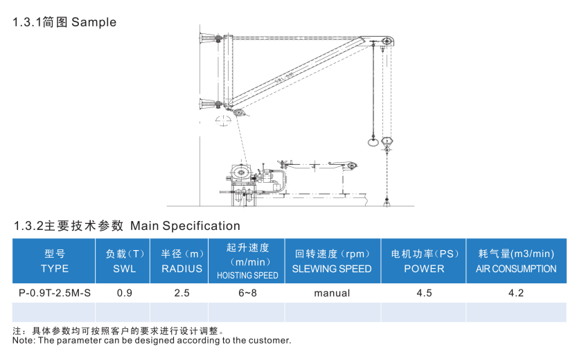 | 起升速度: | 6~8m/min | 回轉(zhuǎn)速度: | manual |