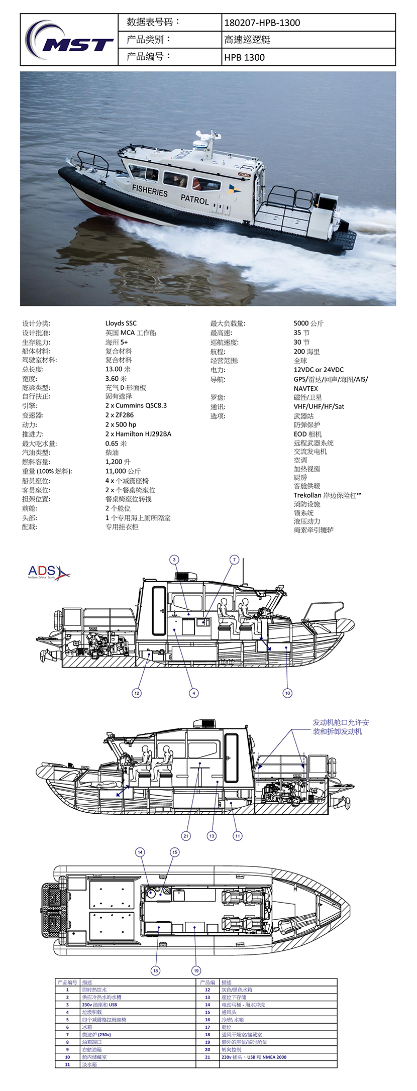 動力: 2×500hp 最大航程: 200海里