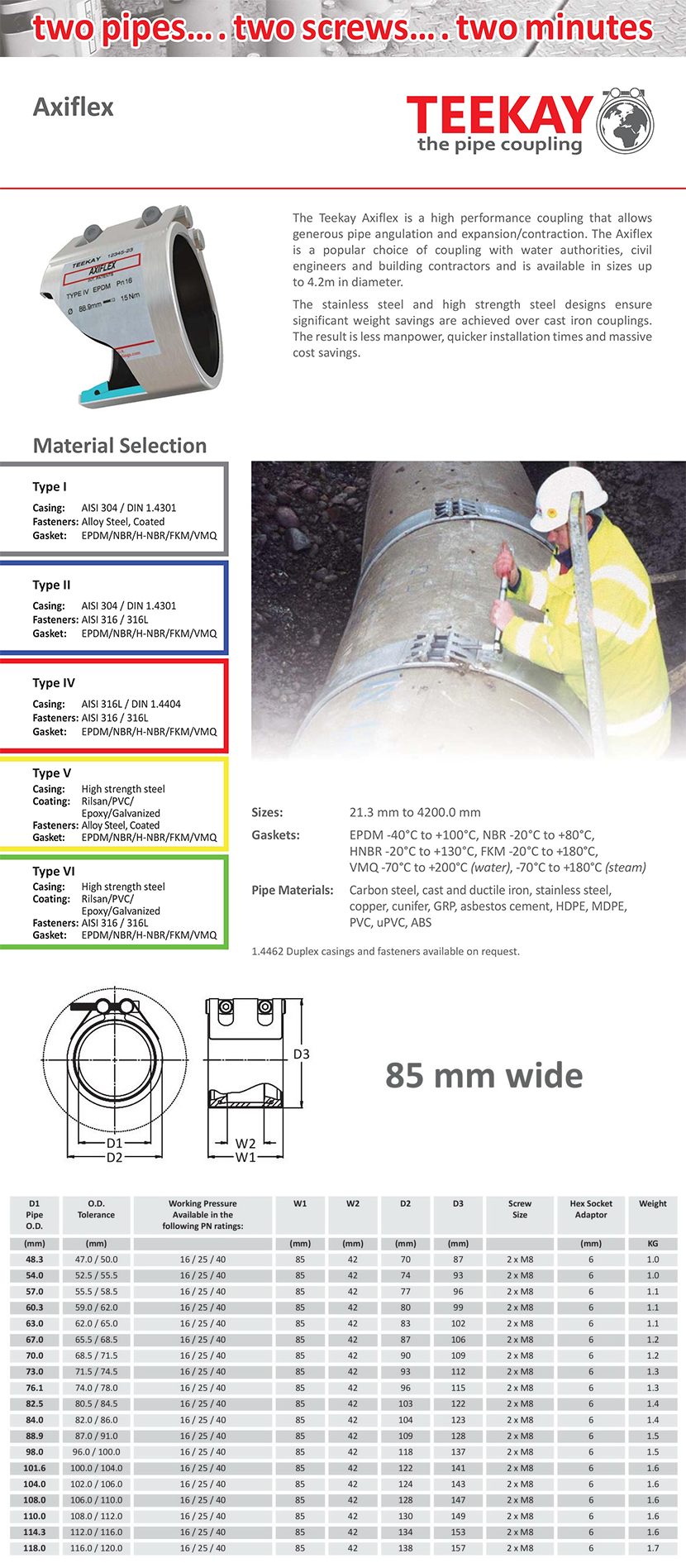 | 85mm寬 Axiflex管件脹縮免法蘭接頭 | |||