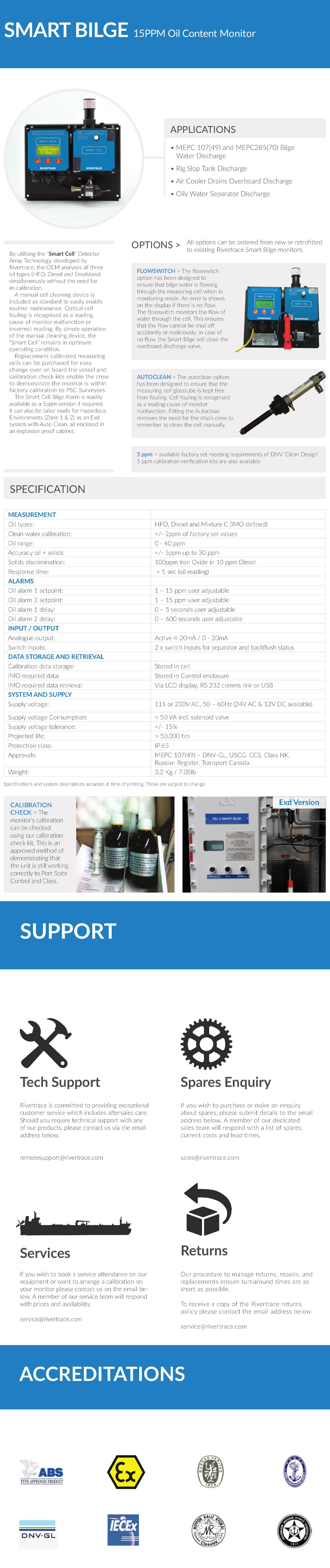 符合標(biāo)準(zhǔn): MEPC 107(49) – DNV-GL, USCG, CCS, Class NK, Russian Register, Transport Canada 性能亮點(diǎn): The OCM can analyse all three oil types simultaneously without the need for re-calibration ; Replacement calibrated measuring cells can be changed